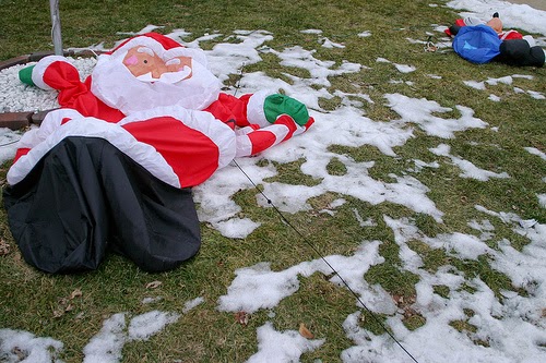 And poor old Santa...bless his heart is probably trying to figure out a way to write up his letter of resignation. Everything about him has been deflated from yard ornaments to his energy. Hopefully by the time Mrs. Santa has a visit with him, he will decide that he'll try it one more year but this year he and the elves are going to the local Vo-Tech and learning how to build a lighter weight game machine. The sleigh was so heavy that the reindeer had trouble keeping in the sky and Rudolph is seeing a chiropractor next week for his back trouble.